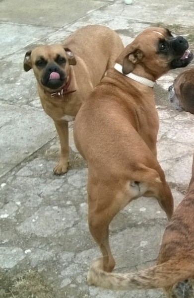 Was wir nicht mögen sind Katzen. Ansonsten sind wir sehr liebe und gut erzogene Boxer. Überaus Kinderlieb und anhänglich!