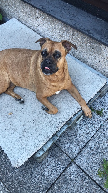 In unserem jetzigen Zuhause leben wir mit 11 weiteren großen Hunden. Die Tochter der Familie ist sehr schwer erkrankt, so dass Frauchen sich nunmehr von einem Großteil der tierischen Mitbewohner trennen muss.