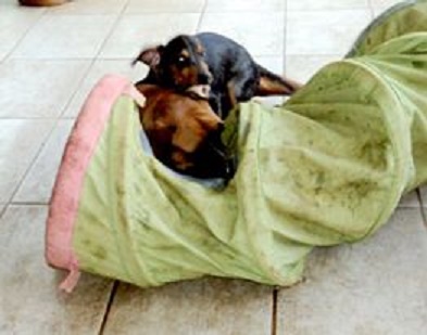 Cleo liebt es zu spielen und zu kuscheln. Sie kommt generell mit allen Hunden gut aus, allerdings machte eine blinde Hündin ihr auf der Auffangstation zu schaffen.