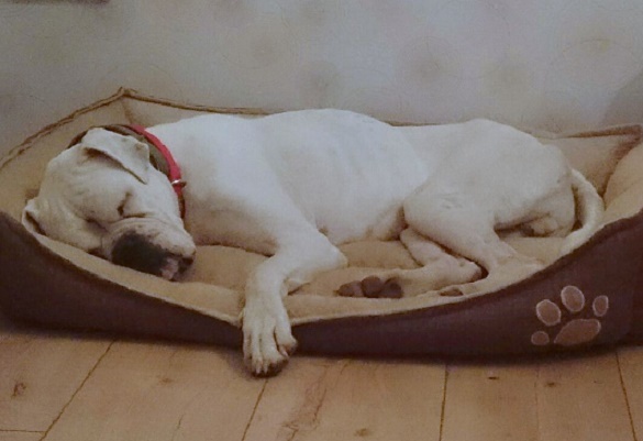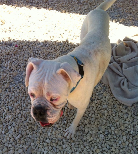 Hauptsache, er ist nun in Sicherheit! Sein Appetit ist gut und als Dankeschön verteilt er ganz viele nasse Boxerknutschis an seine Pflegemama.