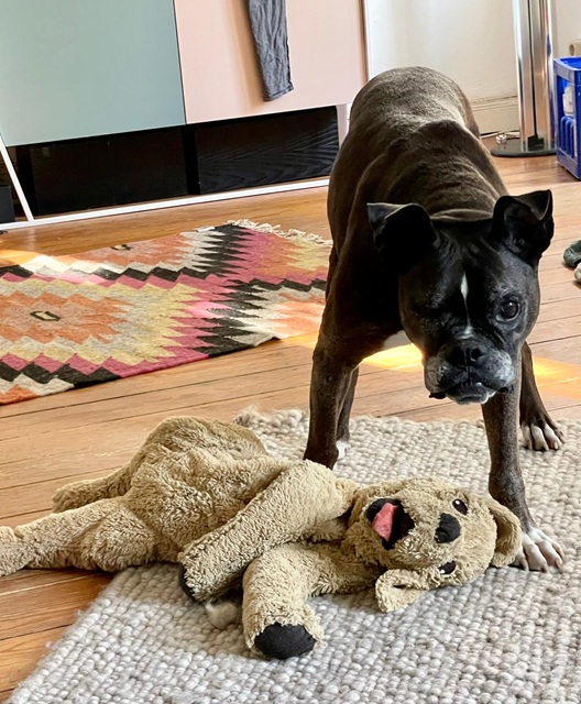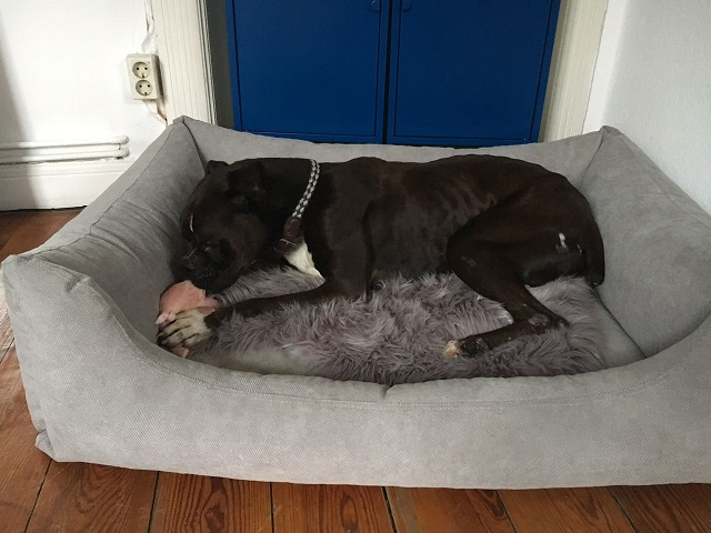 Lange hat mein Frauchen auf mich gewartet und sich gefreut – aber ich freue mich noch viel mehr und möchte am Liebsten immer ganz nah bei ihr sein – wer sagt denn auch, dass Boxer keine Schosshunde sein können….