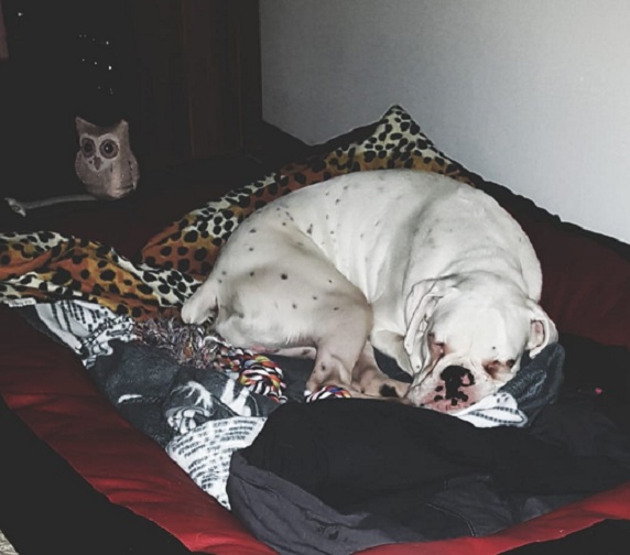 Zu meiner neuen Familie gehört außer der Katze und den beiden Hunden noch ein Zweibeiner, mit dem ich nachts kuscheln und tagsüber Fußball spielen darf. Das ist richtig toll.