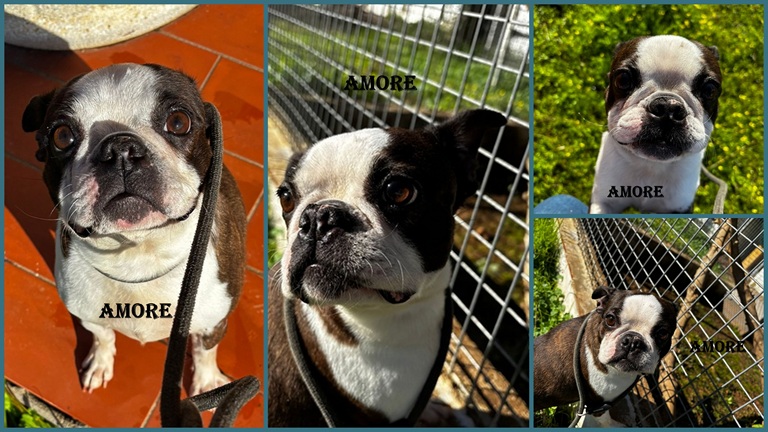 Infos: Zutraulich und sehr anhänglich. Verträglich mit anderen Hunden. Amore ist neugierig auf Katzen, tut ihnen aber nichts.