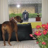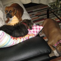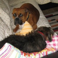 Ich bin dort nicht alleine, Paul ein 10 jähriger Am.Staff, wahrscheinlich mit russischer Herkunft und Nelly aus Ungarn, eine 5 jährige Dackelterriermix Hündin.