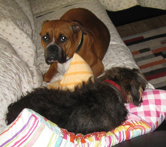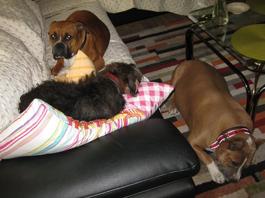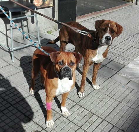 Ich bin dort nicht alleine, Paul ein 10 jähriger Am.Staff, wahrscheinlich mit russischer Herkunft und Nelly aus Ungarn, eine 5 jährige Dackelterriermix Hündin.