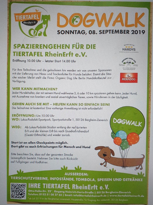 Dog Walk, 08.09.2019, 50126 Bergheim – Wir sagen allen Teilnehmern DANKE! und konnten trotzdem 55 Euro Einnahmen verbuchen!