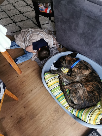 Treppen laufen und ins Auto gefiel mir anfangs nicht so sehr. Treppen klappt jetzt super, ins Auto werde ich gehoben, aber ich habe wohl auch etwas Angst wieder abgegeben zu werden. Wenn wir von Zuhause aus fahren möchte ich nicht in der Box bleiben, wenn wir aber von woanders aus losfahren bleib ich ganz ruhig.