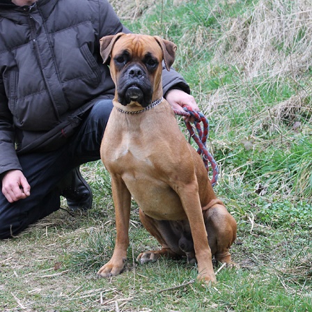 Er ist ein toller Boxer mit einem sehr guten Charakter, mit Artgenossen hat er überhaupt keine Probleme.