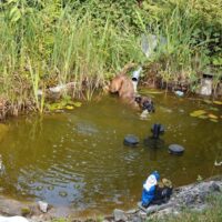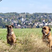 Die Gegend hier ist toll, es gibt grüne Wiesen und viele Wälder, in denen wir alle gerne zusammen spazieren gehen. Wir haben auch einen Garten mit einen kleinen Teich. Bei meiner Begutachtung am ersten Tag bin ich da direkt mal reingefallen. Wer hätte auch gedacht, dass Duna die Große nicht übers Wasser gehen kann. Aber zum Glück bin ich nicht Wasserscheu, auch der Sauerländer Regen auf so manchem Spaziergang macht mir nichts aus.