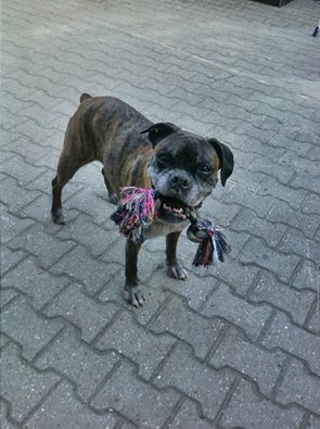 Wesen: selbstbewußte und aktive Boxer-Omi, Kinder sind kein Problem, nette Artgenossen sollten ihren Rang akzeptieren, sie hat gelegentlich allergische Hautausschläge mit ungeklärter Ursache
