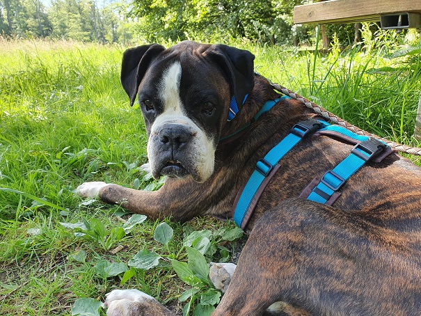 Was ich suche ist ein Einzelplatz, wo ich nah bei meinen Menschen sein darf. Ihr solltet Boxerverstand haben und mich langsam fordern.