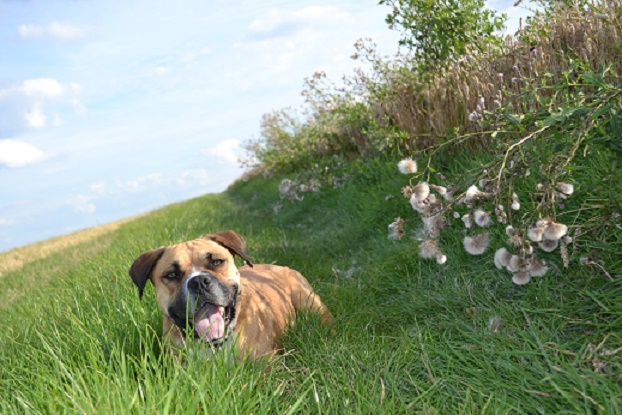 Dusty ist ein freundlicher und verspielter Boxer, der die Nähe zu Artgenossen ebenso sucht, wie zu Menschen.