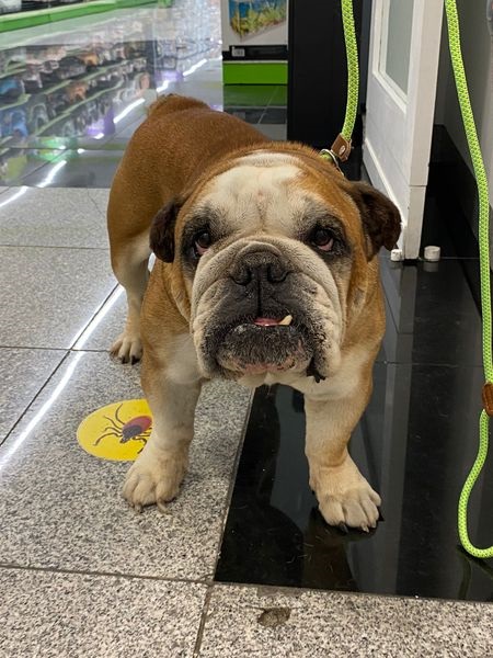 Leider sitze ich grade in einem Tierheim fest, was ich total doof finde. Bulldoggen gehören in eine Wohnung als geliebte Götter und nicht ins Tierheim!