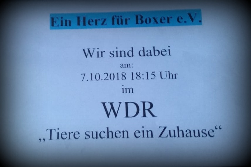 schaut doch einfach mal am 7.10.18 bei WDR „Tiere suchen ein Zuhause“ rein.