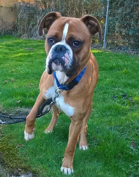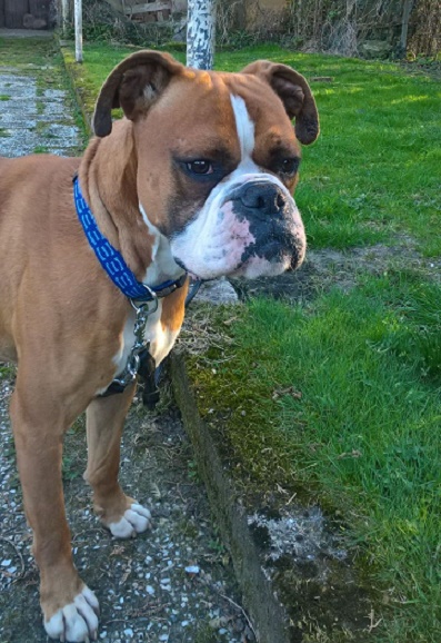 Wesen: sehr lieber und verschmuster Boxer, Familienhund, Einzelplatz, Hundetraining / Schule erforderlich