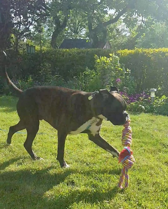 Fakt ist, dass ich ein ganz lieber und gut erzogener Boxer bin. Mit Artgenossen jeden Geschlechts und jeder Größe komme ich zurecht.