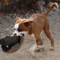 Immer gut gelaunt, geht er auf jeden boxertypisch zu und fordert zum Spiel auf, aber auch intensive Schmuseeinheiten sind ihm willkommen.
