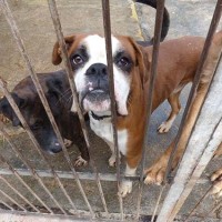 Eros ist ein junger aktiver Boxerjunge, der im Tierheim von Figueras auf seine Menschen wartet.