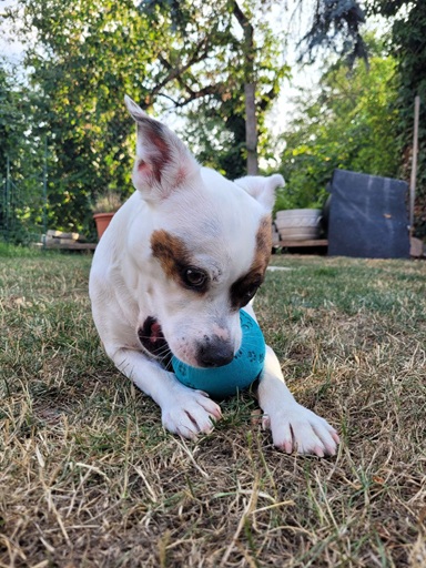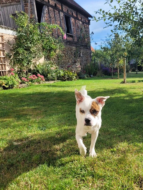 Ich freue mich eigentlich über alles und jeden und selbst beim Laufen wedele ich immer freudig mit meiner Rute hin und her, was lt. Aussage meiner Betreuerin wohl sehr lustig aussieht. Ich liebe es mit allen Artgenossen zu spielen. Habe dabei weder Probleme mein Spielzeug zu teilen, noch mein Futter.