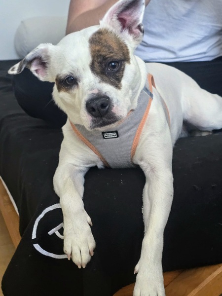 Sie lebte bislang harmonisch mit einem English Bulldog-Rüden zusammen und sucht nun ein liebevolles Zuhause, in dem sie ihre Zuneigung und Treue schenken kann.