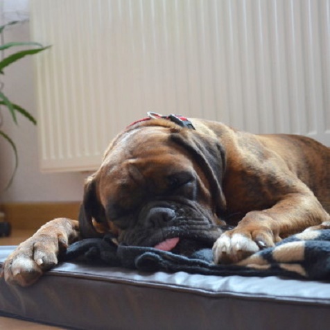 In dieser kurzen Zeit es ist es uns wohl gelungen, ihr die „Innere Ruhe“ und Ausgeglichenheit zu vermitteln. Dass es so schnell ging, hatten wir nicht gedacht. Sie freut sich ungemein, wie es Boxer tun zu zeigen, wie sie einen mag. Sie verbiegt sich und das kleine Stummelschwänzchen zuckelt hin und her. Sie schmeißt sich in ihr Körbchen, Beine in die Luft und windet sich um die eigene Achse!