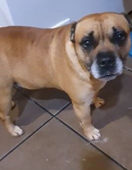 Wesen: verträglicher und anhänglicher Boxer-Mix, leinenführig