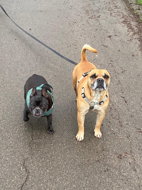 Hier wohne ich mit Sunny zusammen. Eine kleine französische Bulldogge. Wir vertragen uns super. Sie hat direkt ihr Körbchen mit mir geteilt. Das finde ich schön.