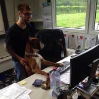 Wie ihr auf dem Bild sehen könnt, macht mir auch mein neuer Job im Büro riesen Spaß. Ok, ehrlich gesagt bin ich nicht wirklich produktiv, liege die meiste Zeit nur schnarchend im Körbchen, dennoch mögen mich hier alle. Ja ich weiss, ich sollte mir abgewöhnen an den Schuhen der Kollegen zu knabbern, aber es macht mir einfach Laune.