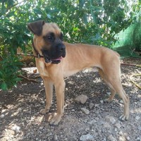 Ein junger, etwas verrückter Boxer mit einem kleinen Sturkopf.