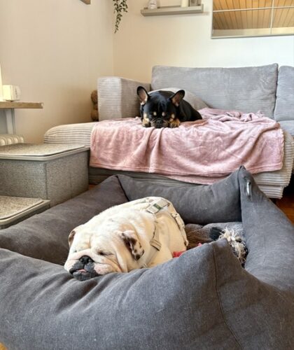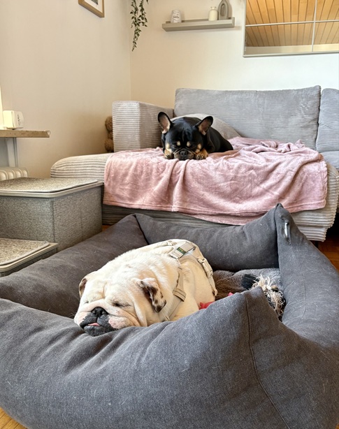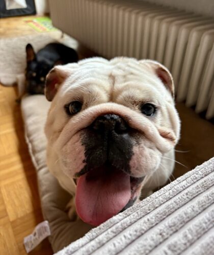 Ganz besonders hilft ihr dabei ihr neuer Freund Knut, unsere französische Bulldogge. Mit seiner gelassenen Art zeigt er ihr, wie schön ein Hundeleben sein kann – gemeinsam im Garten unterwegs sein, miteinander spielen, zur Ruhe kommen und einfach dazugehören. Für Frida ist er ein wichtiger Begleiter auf ihrem Weg ins Vertrauen.
