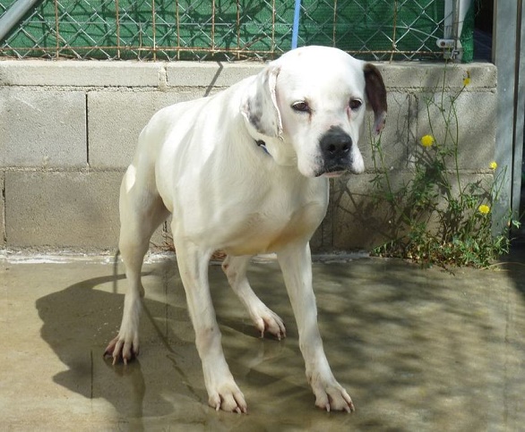 Vor 3 Monaten kam eine weisse Boxer-Mix-Hündin zu uns, sie heisst Frida. Sie wurde im Wald aufgefunden.