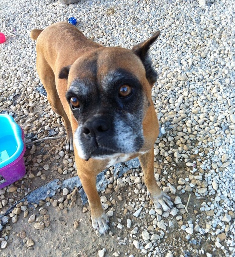 Frieda ist eine sehr liebevolle alte Boxerdame. Mit Artgenossen verträglich. Sie stellt keine großen Ansprüche: Liebe, Streicheleinheiten, einen gefüllten Futternapf und ein weiches Plätzchen !
