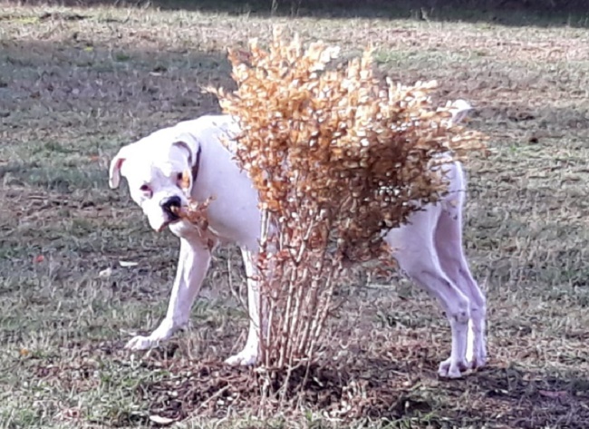 Nur vor Rüden hat er Angst, es ist aber nicht so, das er dann in die Offensive geht – nein, er zieht sich zurück und es kann sein, das er sich hinter einem versteckt.
