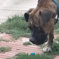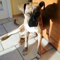 Wesen: temperamentvoller junger Boxer Mix, verspielt, hat Grunderziehung und läuft gut an der Leine, gerne als Zweithund