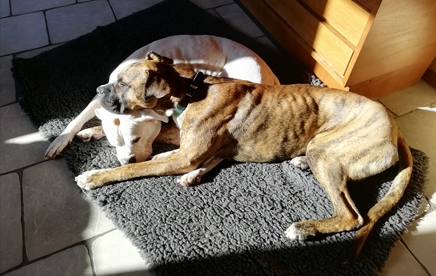 Klar kann ich auch altersmäßig toben und spielen, doch finde ich ebenso schnell meine Ruhephasen und kuschele total gerne mit meinen Kumpels hier!