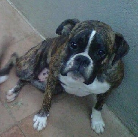 Die kleine Boxerhündin Gala wartet zur Zeit noch an der Costa Brava.