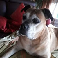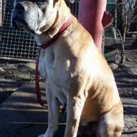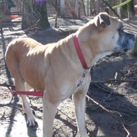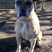 Wir wurden aus Nyíregyháza wegen eines Kettenhundes in schlechter Haltung um Hilfe gebeten. Gina ist eine ca. 2007 geborener gelber Boxermischling mit kupiertem Schwanz.