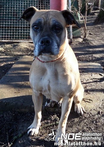 Wir wurden aus Nyíregyháza wegen eines Kettenhundes in schlechter Haltung um Hilfe gebeten. Gina ist eine ca. 2007 geborener gelber Boxermischling mit kupiertem Schwanz.