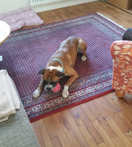 ich bin gut in meinem neuen Heim angekommen. Mein Frauchen hat auch schon Spielzeug für mich gehabt. Der Ball ist ein absolutes Highlight.