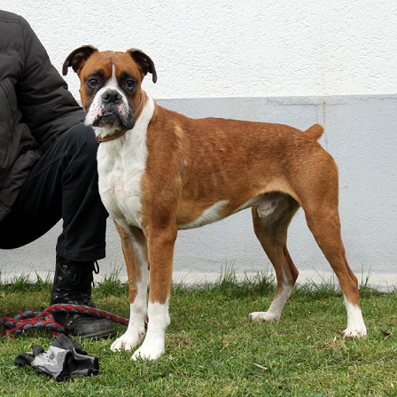 Ich bin ein total verschmuster und verspielter Boxerjunge im besten Flegelalter und brauche laut meines Pflegepersonals noch einiges an Erziehung.