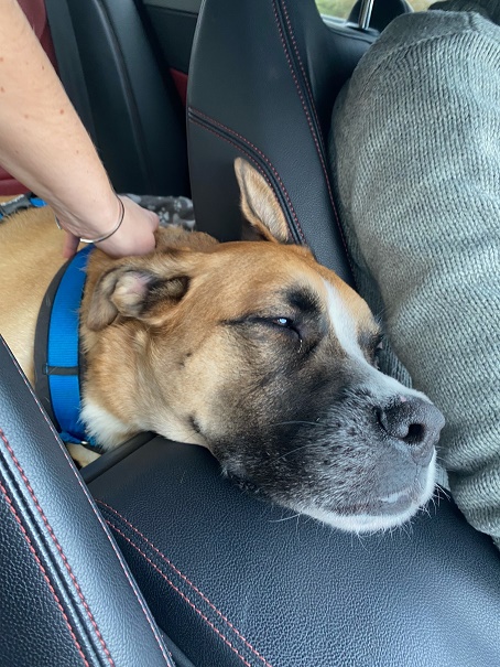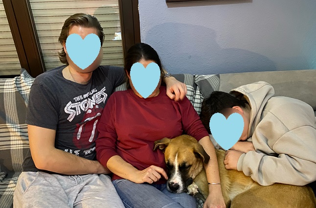 Noch vor Kurzem lag ich bei meiner Lieblingspflegerin auf der Couch und suchte nach meinen Menschen. Nun habe ich sie gefunden. Mein Frauchen und Herrchen mussten ganz schön weit fahren um mich von meiner Pflegerin abzuholen aber Autofahren ist für mich ja sehr beruhigend.