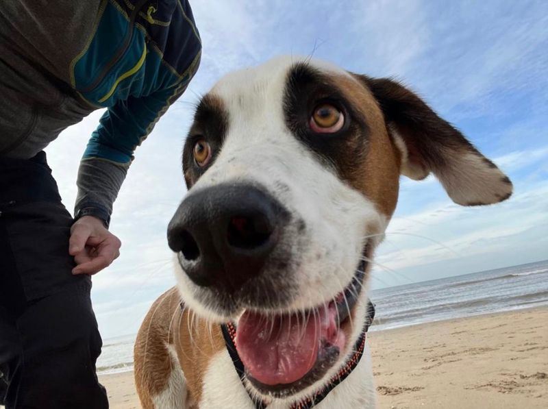 Ganz selten gibt es noch Situationen die er gruselig findet, z.B. sehr laute Motoren oder Geräusche, aber er meistert es gut.