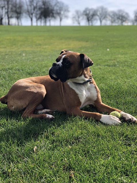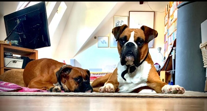 Die ersten Tage waren turbulent und chaotisch, aber von Anfang an zeigte mir meine Boxerfreundin Freya wie das Leben hier in Deutschland funktioniert. Sie ist nur ein halbes Jahr jünger als ich und teilt mit mir ab Tag 1 ihr Kissen, sie zeigte mir neue Dinge wie Treppen laufen und hab ich draußen Unsinn im Kopf und bin abgelenkt, sodass ich nicht auf meine Menschen reagiere, holt sie mich immer ab und weist mich zurecht. Mit diesem Energiebündel wird natürlich auch wie wild getobt, gespielt, die Welt entdeckt und gekuschelt.