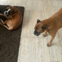 Mein neuer Gefährte ist auch ein Boxer, er hat mich gleich akzeptiert. Von ihm schaue ich mir einiges ab.