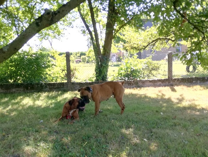 Andrea und ihre Familie haben Erfahrung mit Boxern und mit Tierschutzhunden. Man ist begeistert von mir, vor allem, wie gut ich hören kann und Kommandos sofort umsetze.