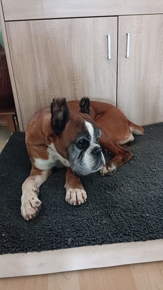 Sie muss jetzt nicht mehr nur davon träumen ein Boxer zu sein, sondern kann ihr restliches Hundeleben bei uns genießen…. und auch der Platz auf dem Sofa ist ihr gesichert.
