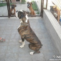 Hodito ist ein reinrassiger, gescheckter Boxer.