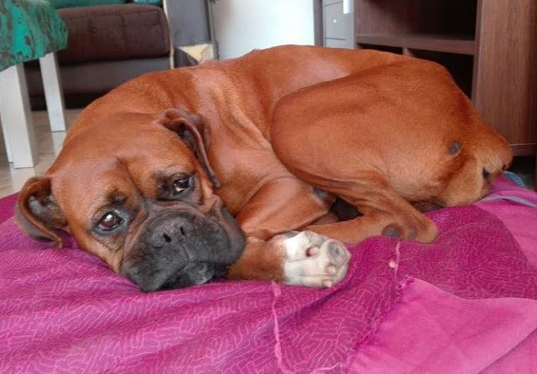 Mit Huma finden sie ein ganz besonders liebes Boxermädchen, die so gar keine Ansprüche stellt.