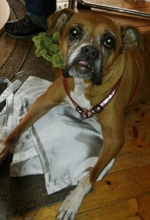 Mein Team besteht aus zwei Frauchen (Frauchen und Simone) und einem großen, bulligen, sehr lieben Boxerkumpel , der auch mal eine Notboxernase war.