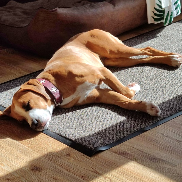 Als Boxer-Labrador-Mix bin ich eine super Mischung sowohl für tolle Spaziergänge, als auch für’s Sofa. Ich vereine also zwei sehr gute Hunderassen in mir.